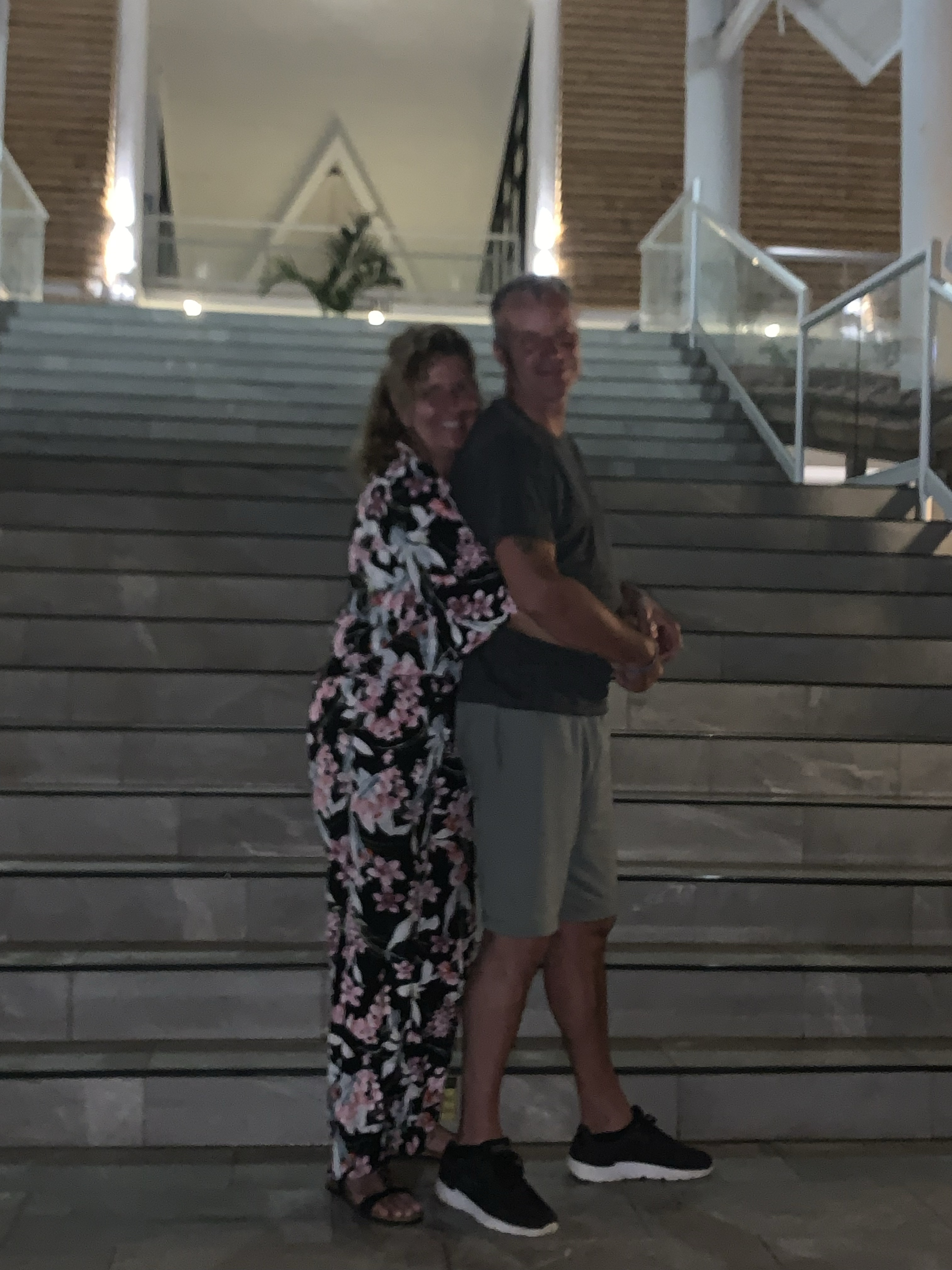 In de avond gezellig in de lounge gechild, sterke verhalen verteld en enorm gelachen … het begon te wennen zo’n resort … De avond afgesloten met een romantische foto van het reisgezelschap …